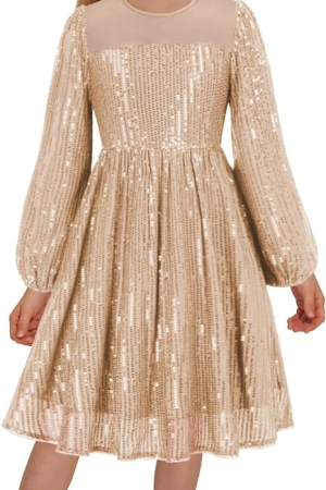Party Dress Long Sleeve A-Line Sparkle Mesh Dresses 5-12Y