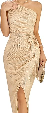 One Shoulder Sequin Dress Sparkly Glitter Wrap Dress