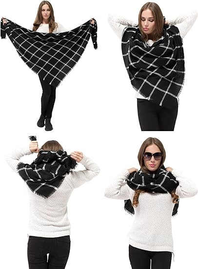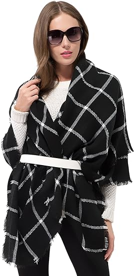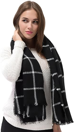 - Our plaid checked scarf shawls are very fashion and stylish. And the colors are very stylish and go with all winter cords, sweaters and coats. Easy to wear and pair with any of your outfits. Our blanket scarves looks luxurious and fashionable, which will make a good gift for your lover, family, friend or coworkers.