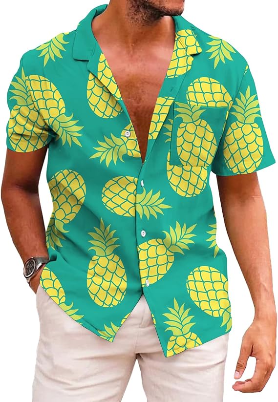 - Perfect Gift: With its unique printed design that combines tropical vibes and casual fashion, this Hawaiian shirt is an excellent gift for your loved ones. Whether it’s for a birthday, holiday, or anniversary, this shirt is sure to become the recipient’s favorite.Easy to Clean: Men’s Hawaiian shirts are easy to clean and maintain. It is recommended to wash them with cold water and hang them to dry. Even after ten years of use, the prints will remain vibrant without fading.