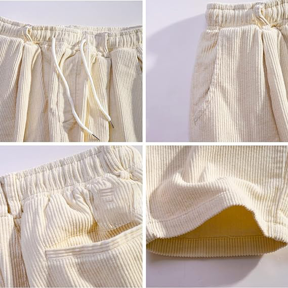 • ❤️Corduroy Casual Pants: Corduroy pants for men women, pull on style, solid color, adjustable elastic waistband, drawstring closure, two side pockets and one back pocket, drawstring hem ankle design.