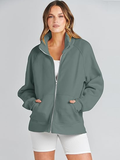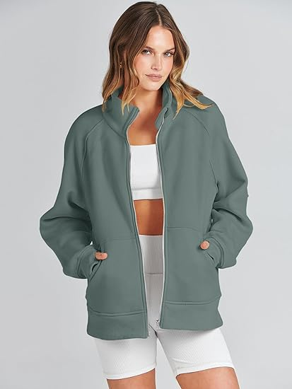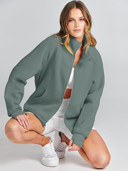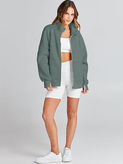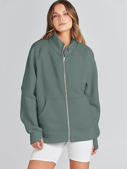 - Features – Zipper Sweatshirts for Women,Oversized Jackets,Drop Shoulder Collar,Full Zipper,Pockets,Thumb Hole,Long Sleeve Pullovers,Fall Winter Fashion Outfits Clothes for Women,Aesthetic Clothing,Y2K Casual Style.